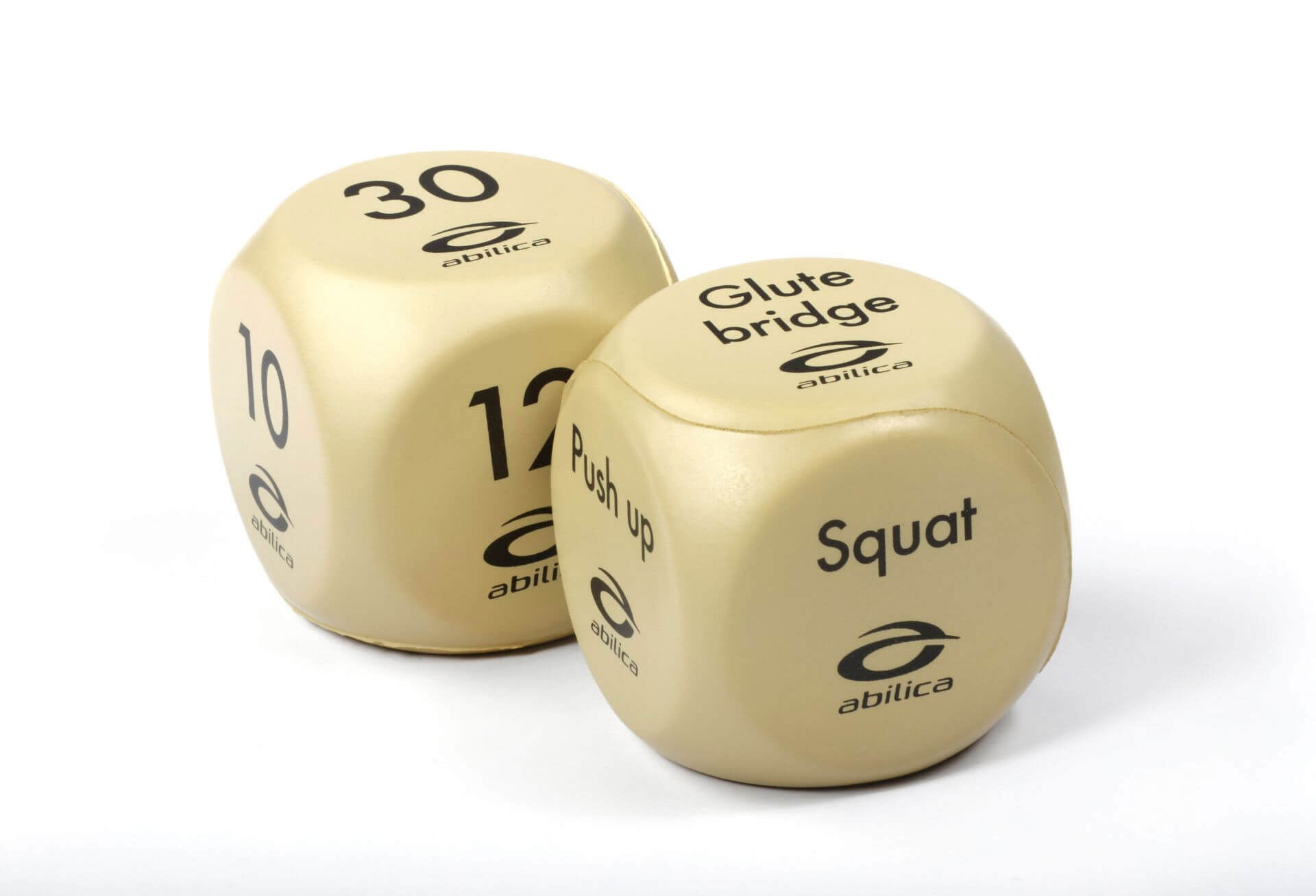 Abilica ExerciseDice är det ultimata tärningsspelet för att göra hemmaträningen både rolig och utmanande! Setet innehåller två tärningar – en som visar vilken övning du ska göra, och den andra som ger dig antalet repetitioner.