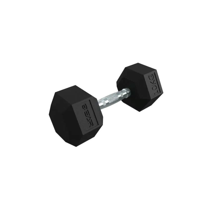 Hexagon formad hantel med ergonomiskt räfflade kromhandtag och sexkantiga vikter i svart gummi. Säljs styckvis (ej i par) Storlek varierar beroende av vikt Varumärke Bear Fitness *Denna produkt är ett engångsparti och kommer ej finnas kvar i sortimentet.