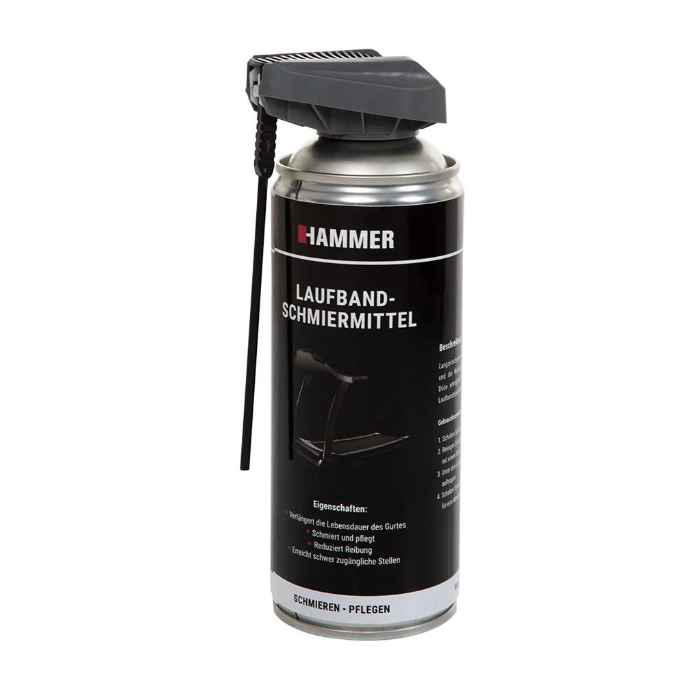 Förlänger livslängden på löpbandsbältet Smörjer och vårdar Minskar friktionen Nå svåråtkomliga platser Genom att använda ditt löpband regelbundet bör du inte försumma underhållet. Topp prestanda genom högkvalitativ vård HAMMER-smörjmedlet är speciellt utvecklat för löpband och är idealiskt som långtidssmörjmedel, att smörjintervallen förlängs avsevärt. Dessutom minskar friktionen genom att använda HAMMER silikonspray avsevärt minskat. Det specialutvecklade munstycket med förlängd spets gör att du kan använda det exakt mellan löpbandsbältet och löpbandets yta.