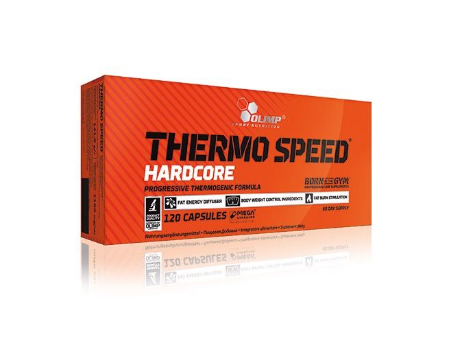 Thermo Speed Hardcore är Olimp Sport Nutritions nya stolthet inom fettförbrännare Avancerad formula för fettförbränning Kan underlätta din fettförbränning Thermo Speed innehåller en av de mest avancerade sammansättningarna av ingredienser som bidrar till att upprätthålla rätt takt av energiska transformationer i kroppen och underlättar kroppens viktkontroll. Capasaicin från cayennepeppar ökar kroppens fettförbränning och niacin bidrar till att hålla rätt metabolism. Doseringsförslag Ta 1-3 kapslar per dag beroende på kroppsvikt. 90kg eller mindre = 2 kapslar per dag, 1 kapsel 30 minuter innan frukost och 1 kapsel innan träning. 90kg eller mer = 3 kapslar, 1 kapsel innan frukost, 1 kapsel innan lunch och 1 kapsel innan träning. Skölj ner tabletterna med rikligt av vatten. Storlek 120 kapslar