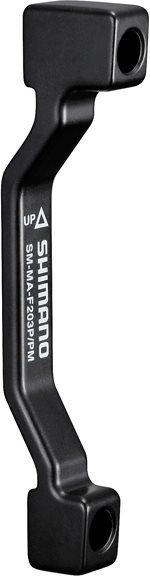 Shimano SM-MA-F203P/PM är en adapter som används fram för att köra med Post mount bromsok och 203 mm bromsskiva på framgafflar med Post mount infästing. Monteringsdetaljer medföljer.