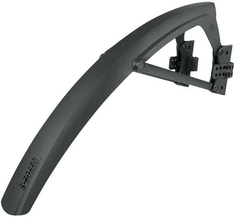 SKS S-Board är en smart clip-on framskärm för landsvägscyklar, cyclocross och hybrider med däckbredd upp till 38 mm. Enkel och smart montering med gummiremmar som ä reglerbara och även passar aerogafflar. Skyddsfilm för ramen ingår.