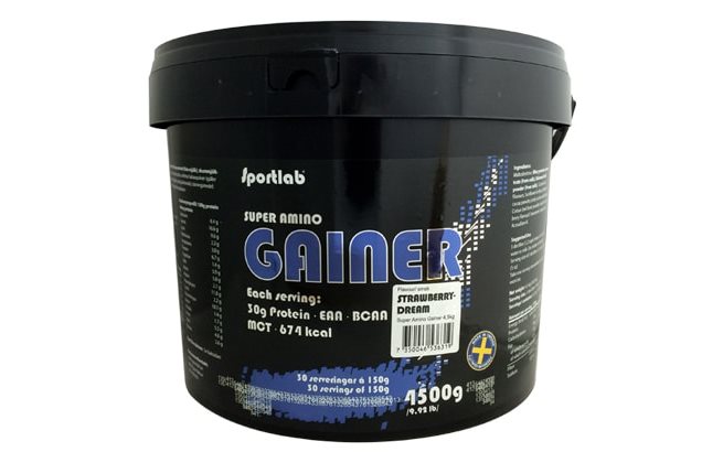 Potent viktökningsformula från Sportlab Sportlab Super Amino Gainer är en effektiv produkt för dig som önskar lägga på dig högkvalitativ massa, eller helt enkelt har svårt att öka i vikt. Ökad återhämtning Ökad massa Ca 670 Kcal per portion Sportlab Super Amino Gainer är en så kallad "medium gainer" dv.s den har inte överdrivet mycket kalorier vilket kan ställa till med magproblem och oönskad fettinlagring. Kalorierna i en portion Super Amino Gainer motsvarar på ett ungefär en helt vanlig måltid. Doseringsförslag 3dl pulver blandas med 3-4dl vatten eller mjölk och intages i samband med träning eller mellan måltiderna. Specifikation Storlek: 4500g Smak: Choklad, Cookies & Cream, Jordgubb