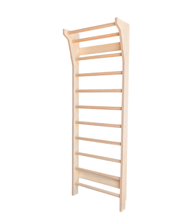 De två översta stängerna är något förlängda från resten av ribbstolarna för att möjliggöra mer mångsidiga träningsövningar för vuxna och lek för barn. Trots detta är designen på TAIMI ribbstolar subtil och strömlinjeformad så att den smälter in sömlöst i heminredningen.