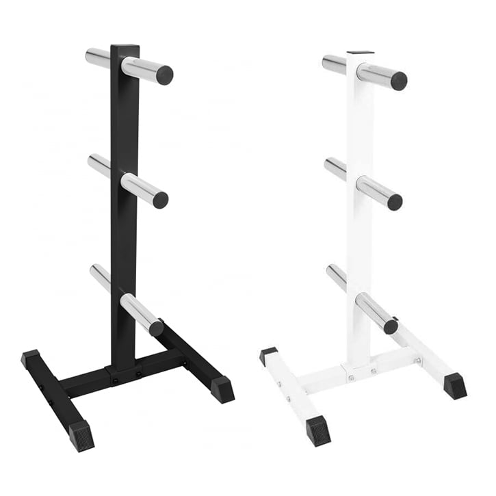 Viktställ 50mm Vit eller Svart Ett viktställ som klarar av en maximal belastning på 350kg, är 112cm högt och har sex armar för dina viktskivor. Med ett sådant för dina vikter håller du koll på vikterna, minimerar skador i din träningsmiljö och maximerar din träningsyta. Viktstället har tre armar på vardera sida och är anpassat för viktskivor med håldiameter på 51mm. Tänk på längden mellan armarna och diametern på dina viktskivor innan du köper det. Övrig information: Avstånd till golvet: Arm 1 – 33cm, arm 2 – 73cm och arm 3 – 107cm Avstånd mellan armarna: Arm 1-2 – 40cm och Arm 2-3 – 34cm Passar viktskivor med en håldiamter på 51mm Färg: Vit/krom eller Svart/krom Mått(LxBxH): 54.5x57x112cm Max belastning: 350kg Längd per arm: 20cm Inkl. monteringsanvisningar OBS! Inga vikter ingår Vikt: 12kg